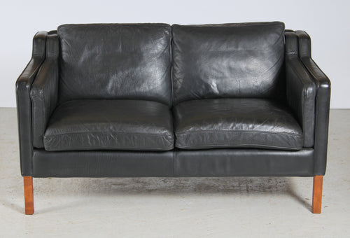 Danish Mid Century Black Leather 2-Seater Sofa by Stouby c. 1970s.