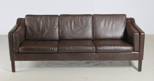 Danish Mid Century Brown Leather 3-Seater Sofa by Vemb Mobelfabrik, circa 1970s.