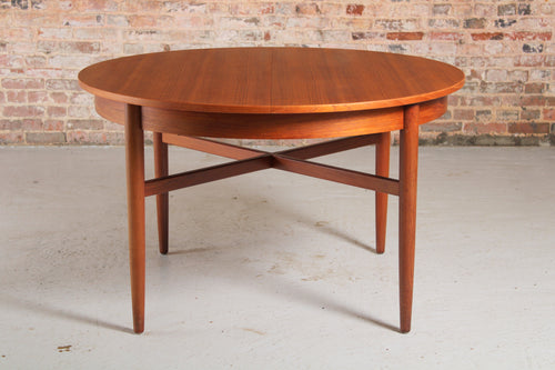Danish Midcentury Round Extending Teak Dining Table c.1960