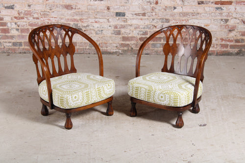 A pair of Arts & Crafts nursing chairs with newly reupholstered cushions, circa 1930s.