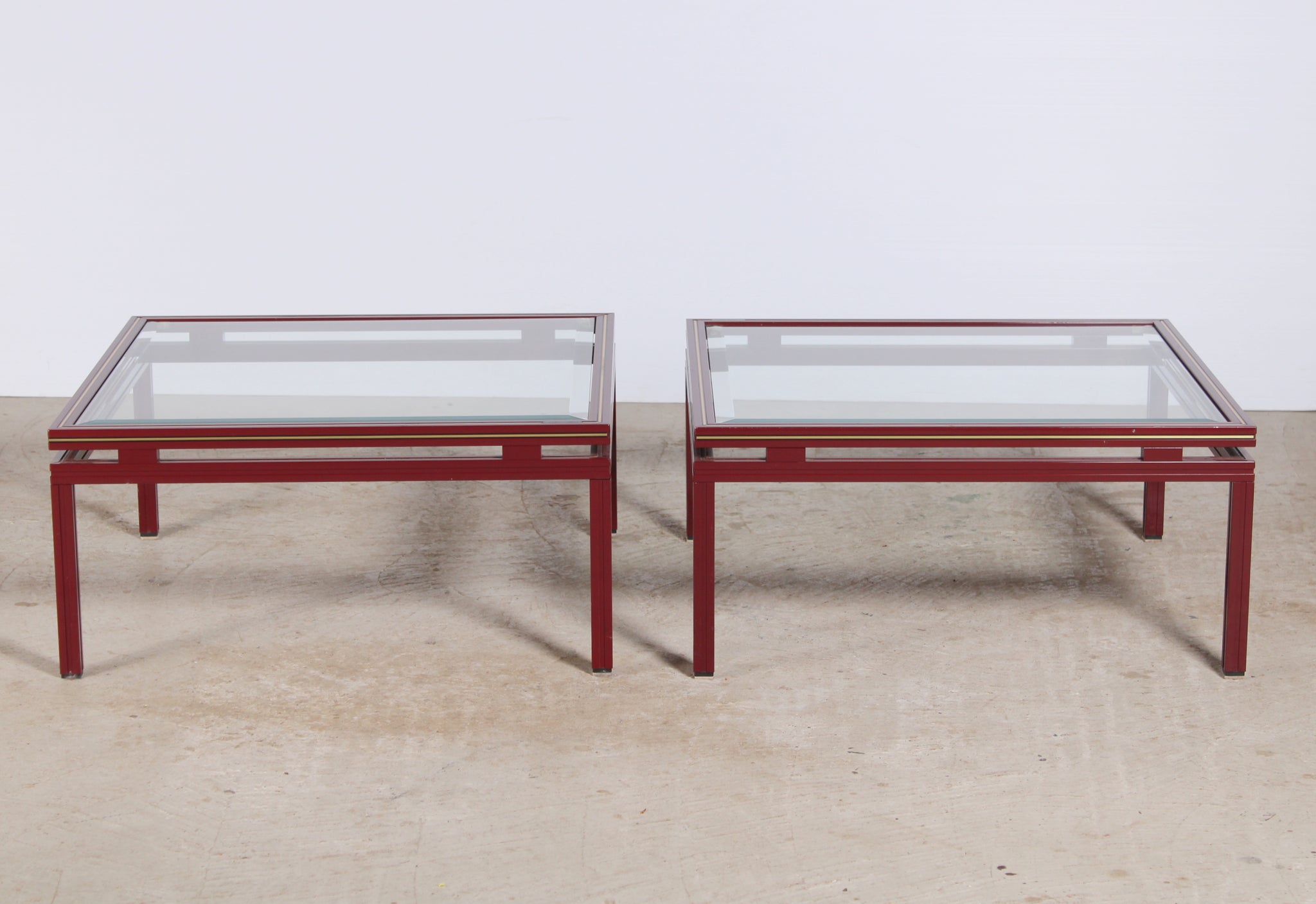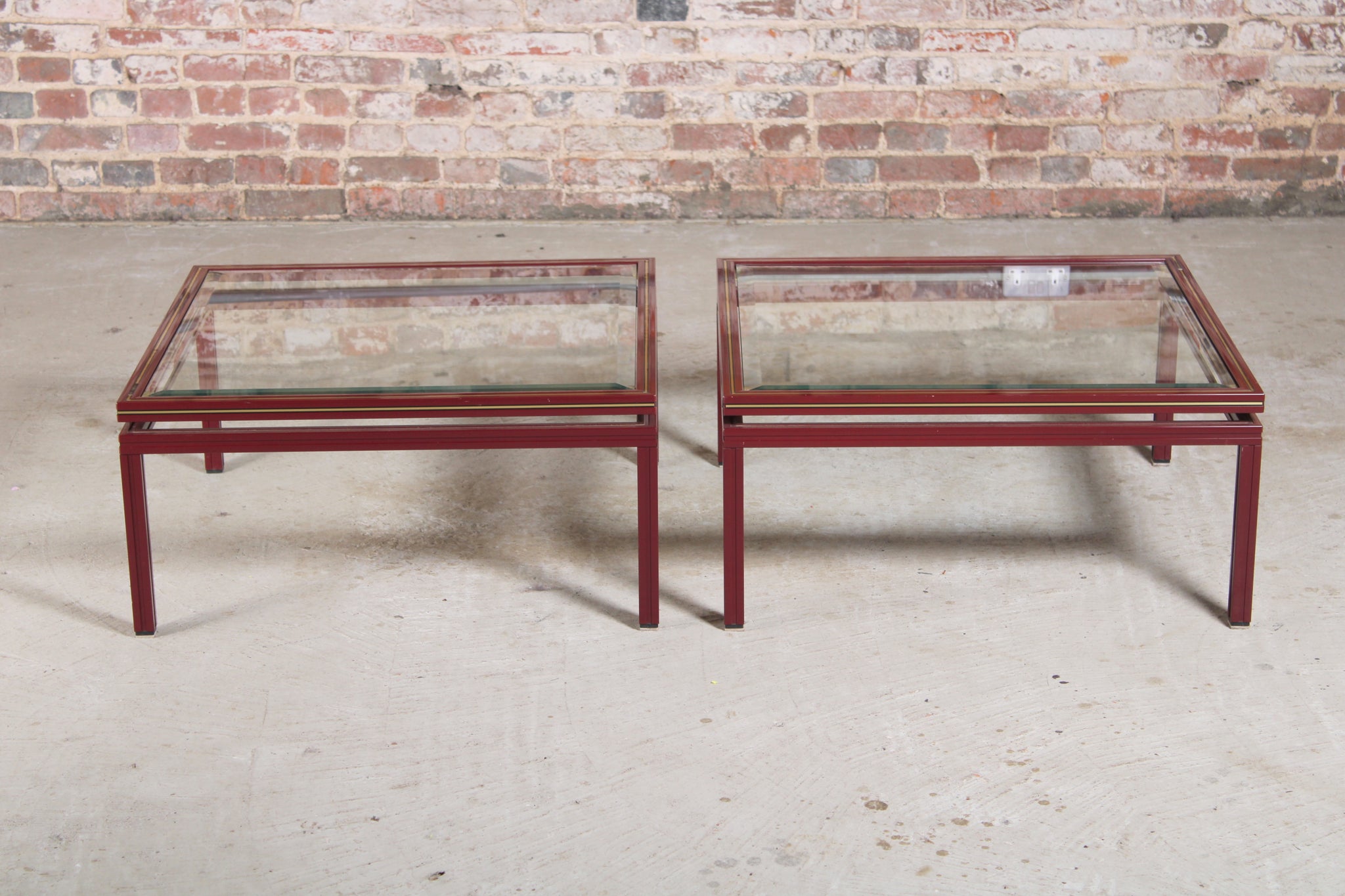 A pair of Pierre Vandel low coffee tables with bevelled edge glass tops, circa 1970s, France. Originally bought from Harrods.