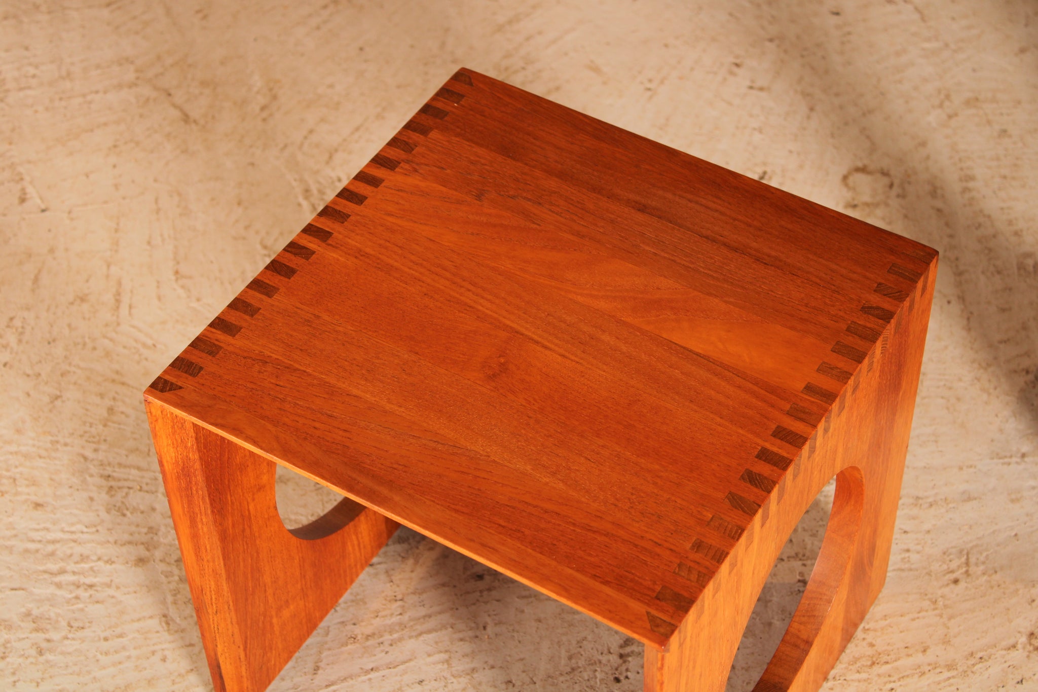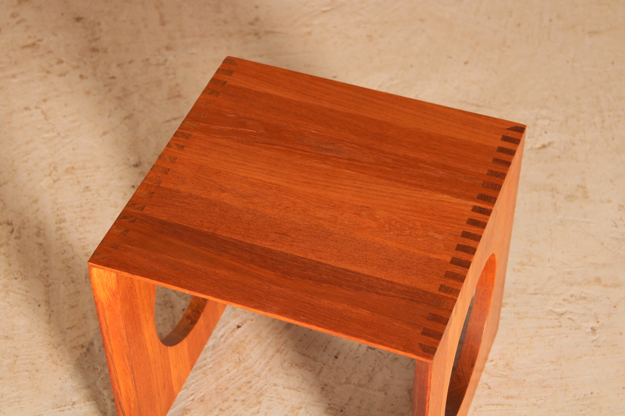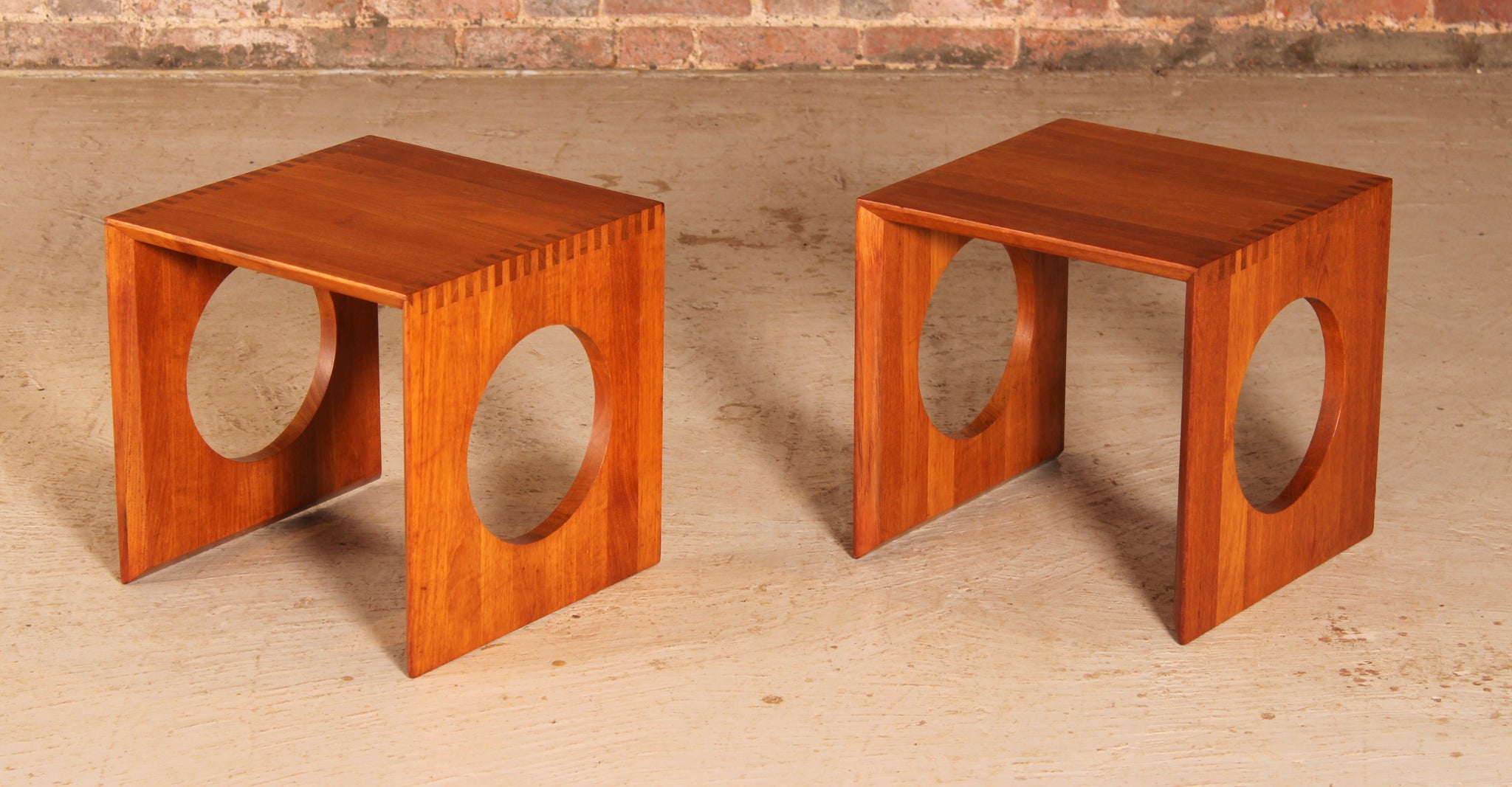 Pair of Danish Mid Century solid teak cube side tables designed by Jens Quistgaard for Richard Nissen, circa 1970s. These two tables can be combined by slotting them together to create a single cube-shaped table. They are in excellent, fully restored condition.