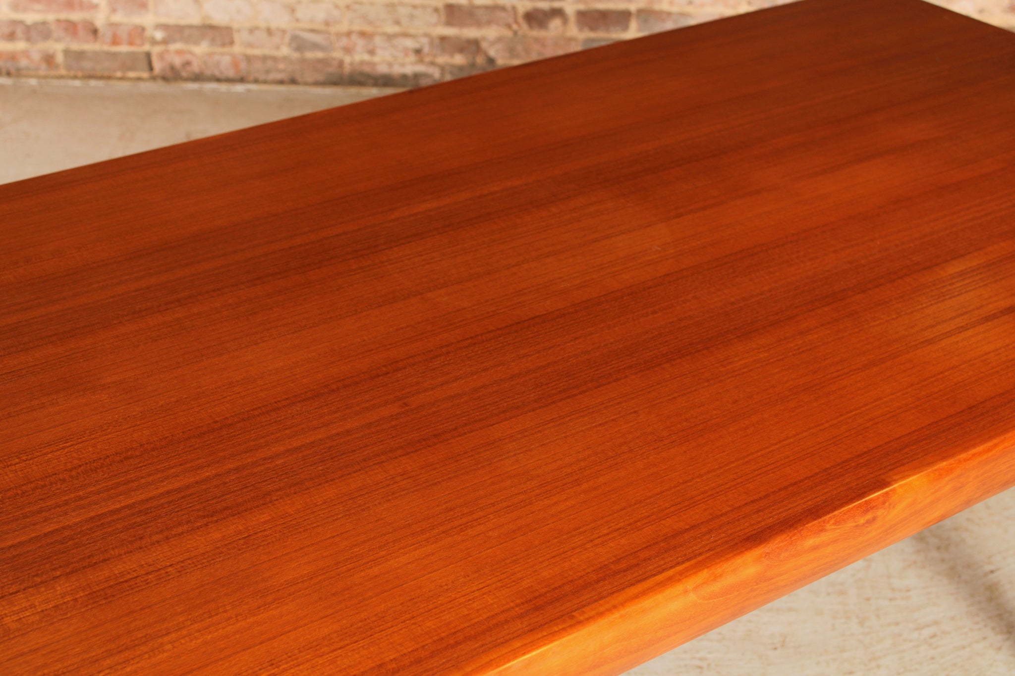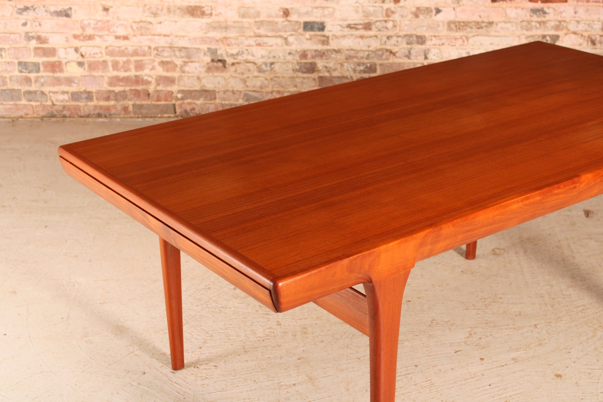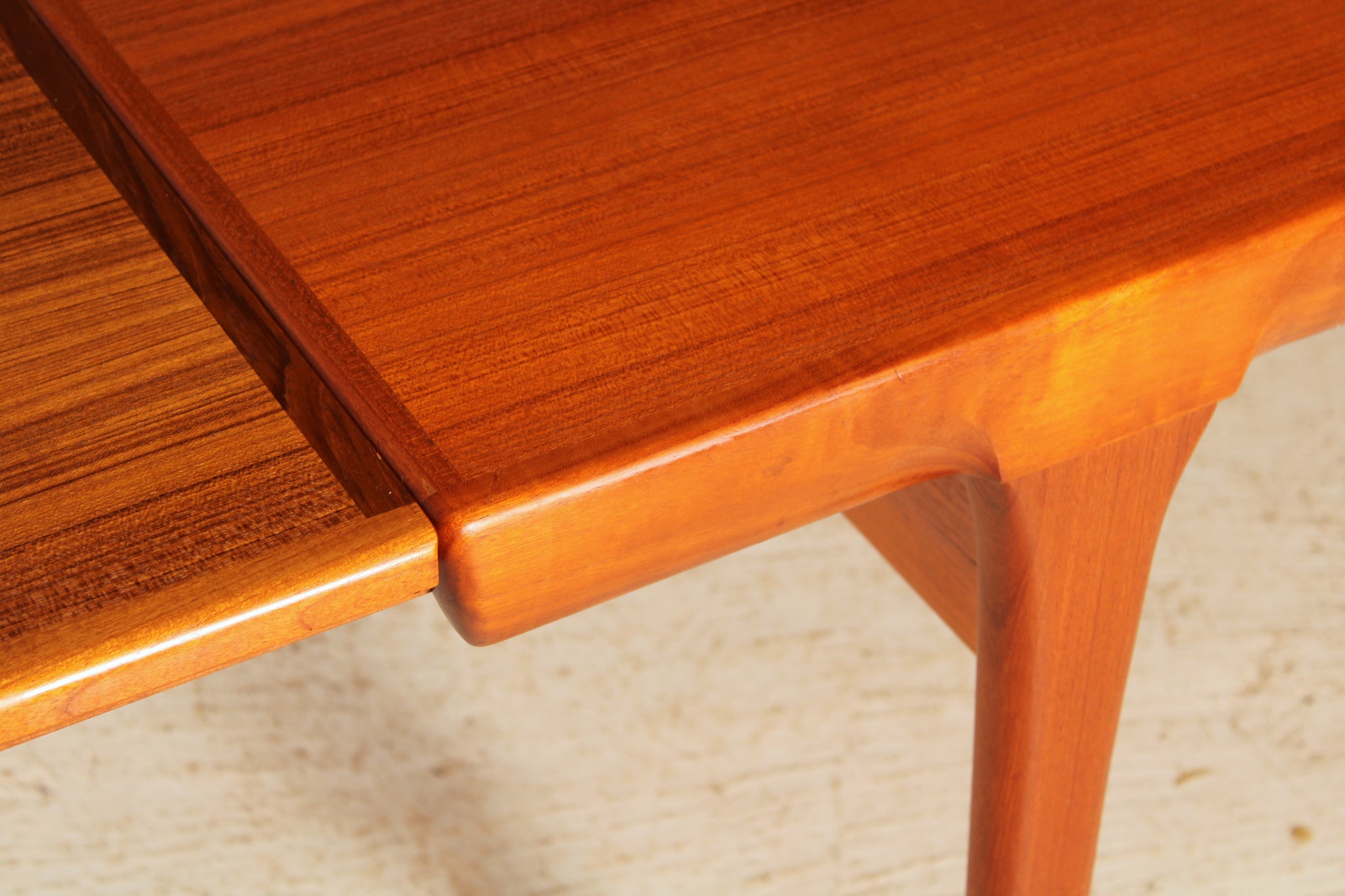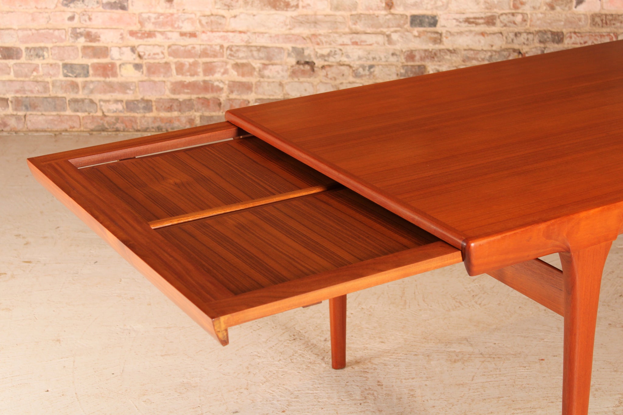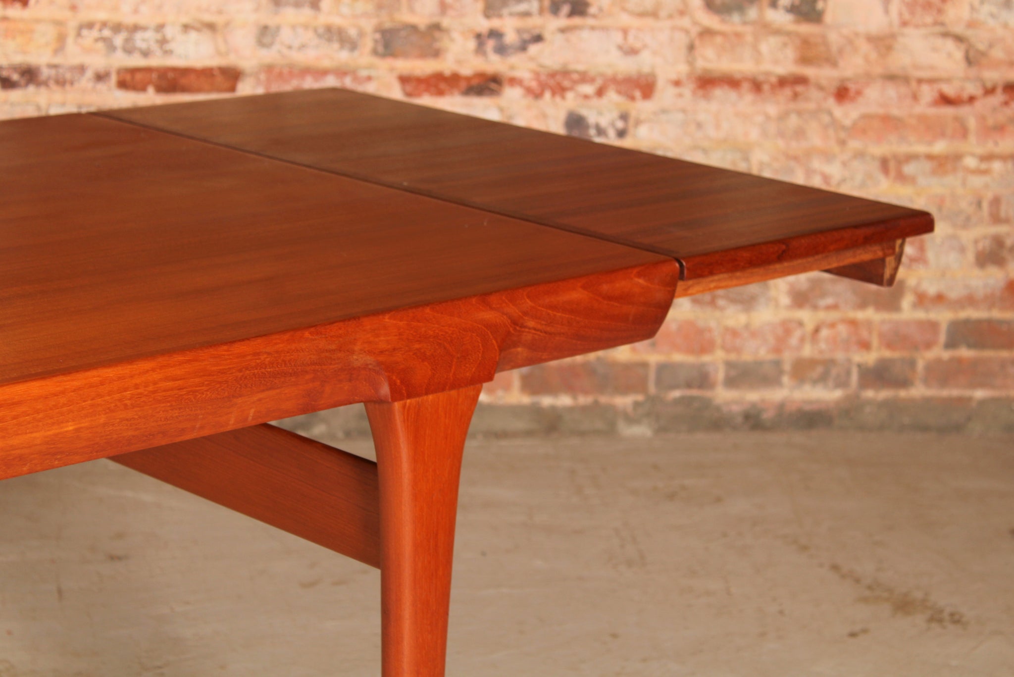 Danish Mid Century teak dining table by Ib Kofod Larsen for Faarup Mobelfabrik, circa 1960s. 2 extension leaves stored underneath. Extends to 245cm to seat up to 10 people. Excellent restored condition. £1,950