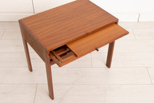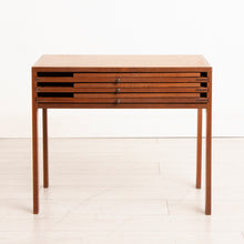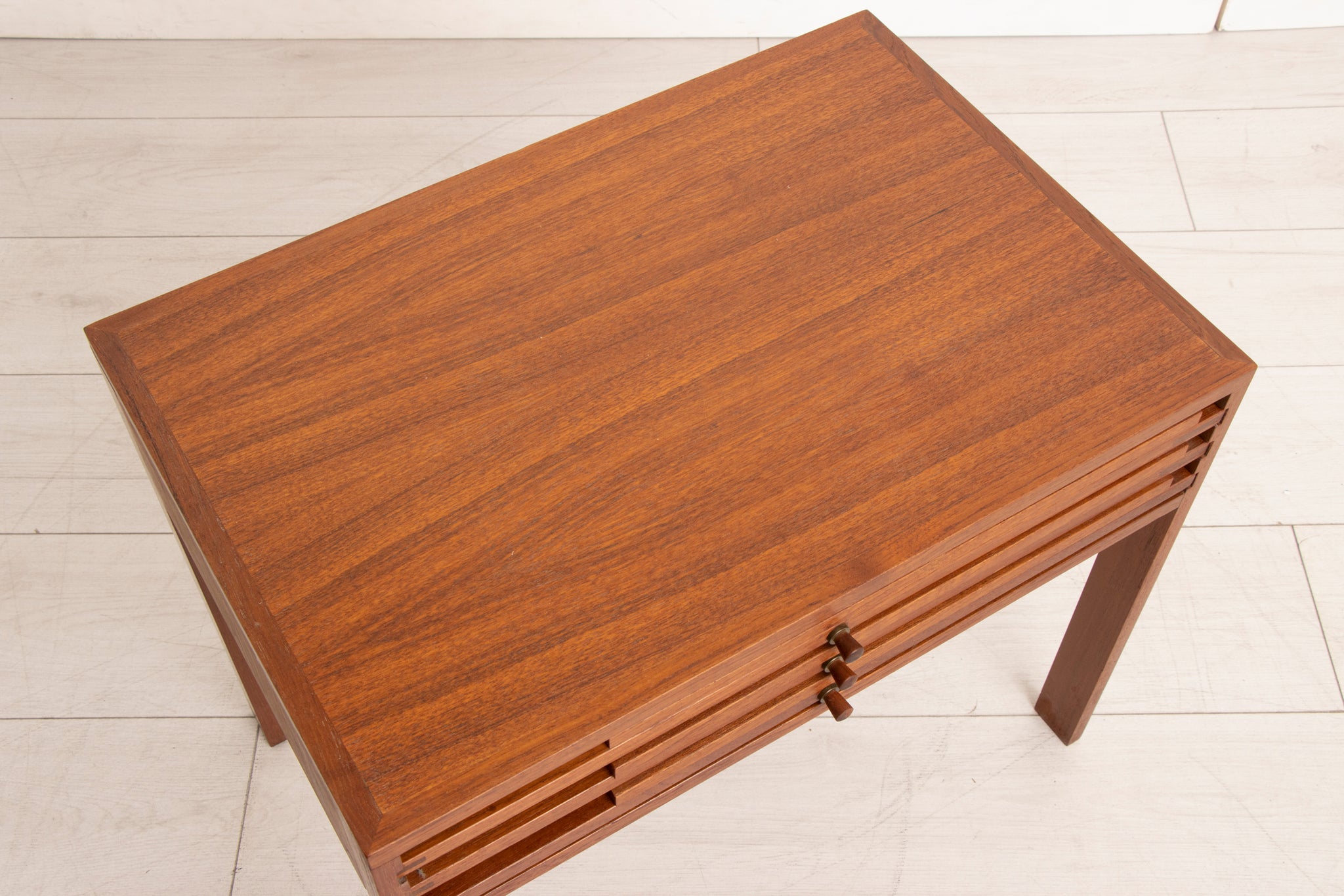 A Danish teak nest of tables designed by Illum Wikkelsø, the set includes a side table with three folding tables stored below.