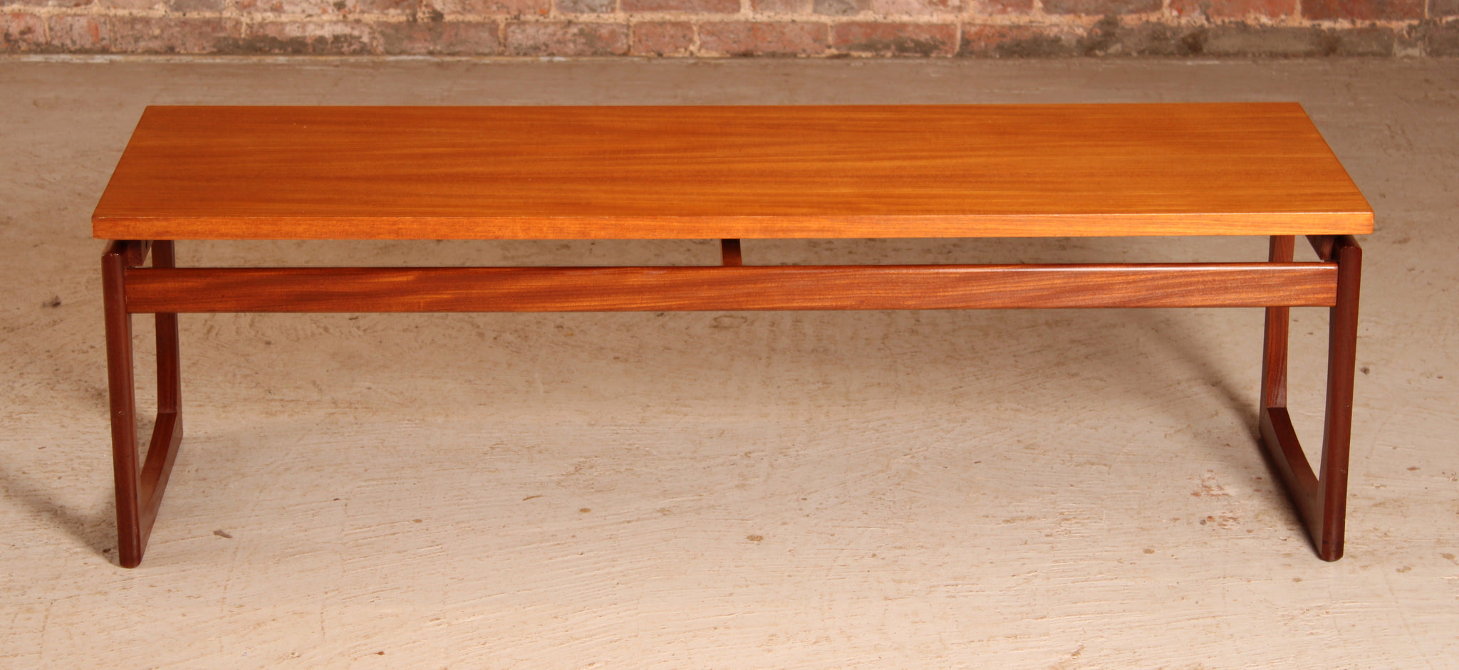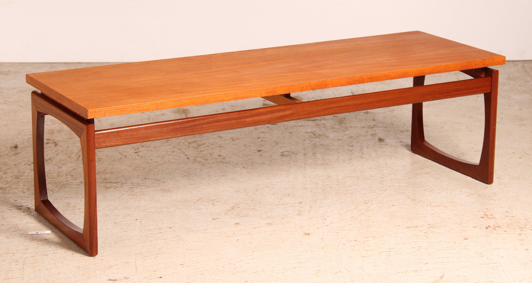 A Mid Century G-plan Quadrille long coffee table crafted from teak, dating back to the 1960s. This piece has been meticulously restored to an excellent condition.