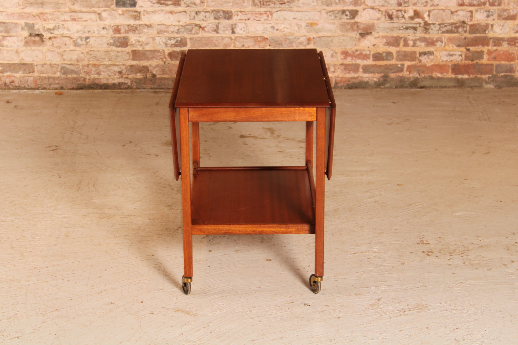 Mid Century mahogany drop leaf serving trolley, circa 1960s. Excellent restored condition.
