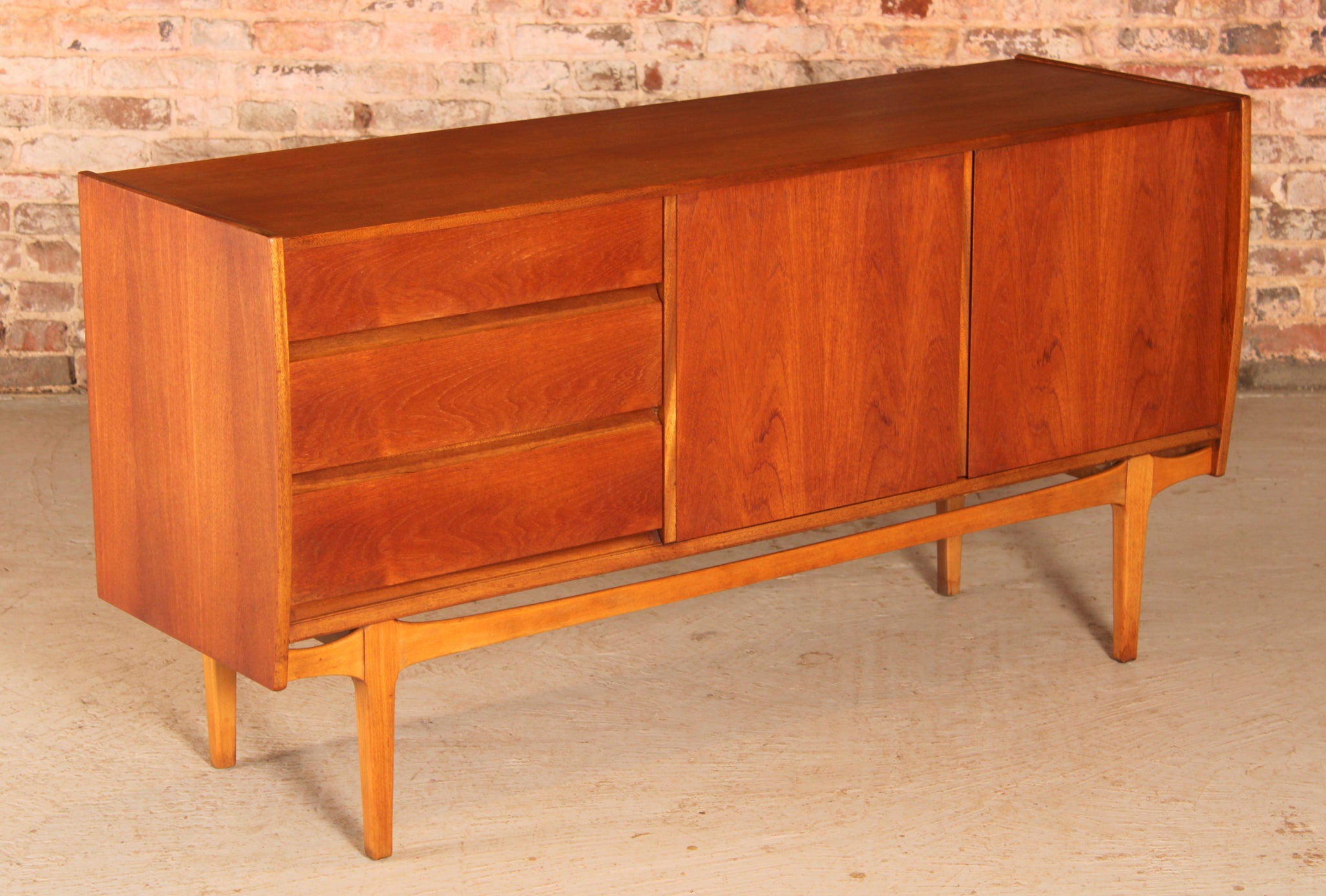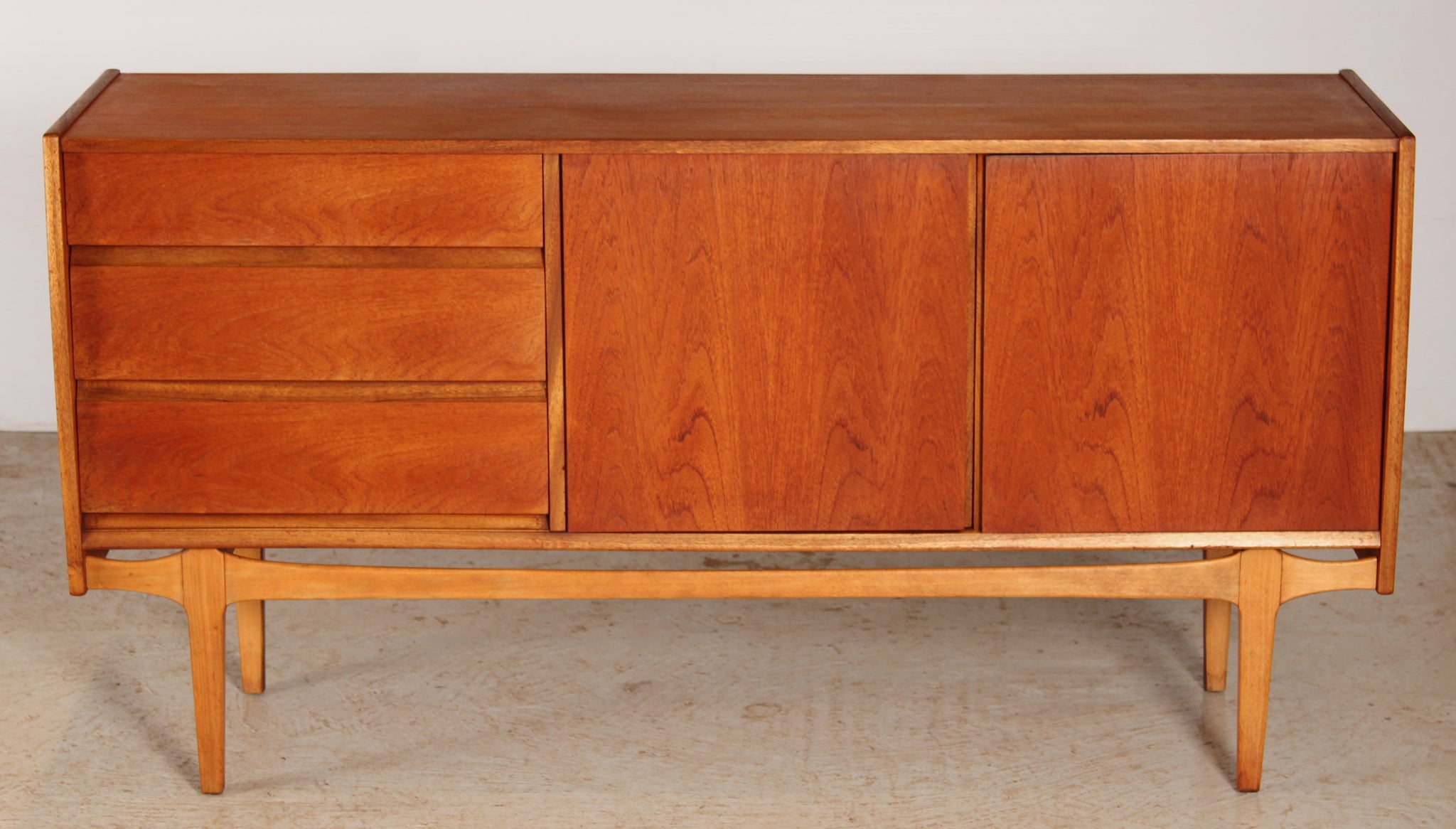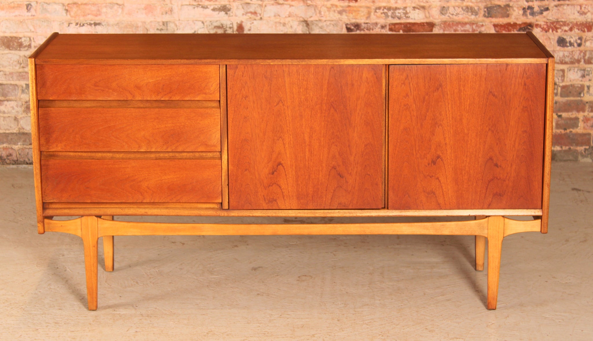 Mid Century teak sideboard by Nathan, circa 1960s. 3 drawers and 2 cabinet sections. Excellent restored condition.
