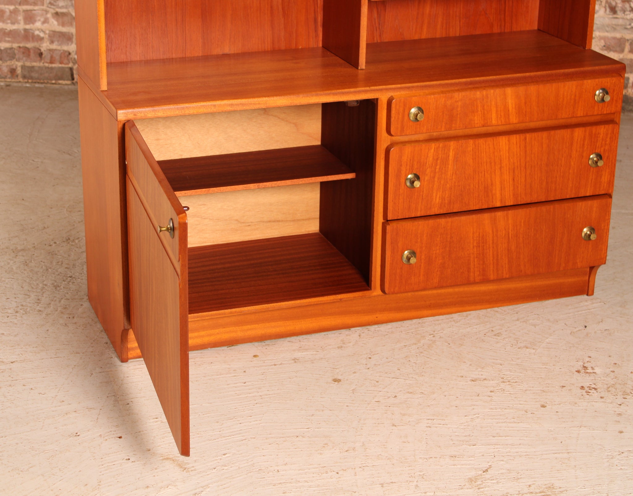 This Mid Century teak wall unit and drinks cabinet by McIntosh, originating from the 1970s, showcases the distinctive craftsmanship and elegant design typical of the period. Crafted from high-quality teak, the unit offers a warm, natural finish that enhances any living space. It provides practical storage options for bottles and glassware, combining functionality with refined aesthetics. Maintained in excellent condition, this piece reflects both durability and timeless style, making it an ideal choice for collectors and enthusiasts seeking an authentic Mid Century statement piece that elevates home interiors.