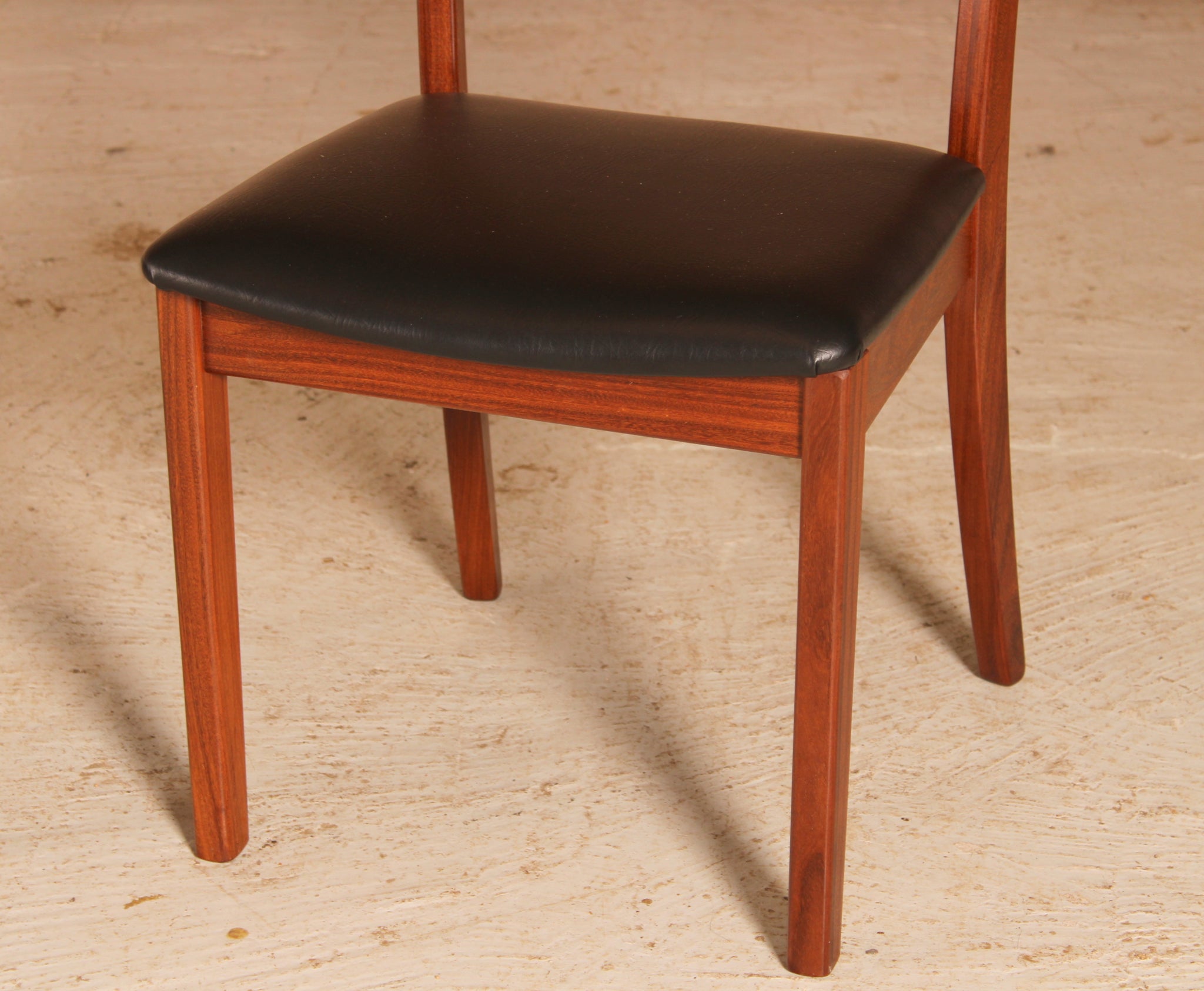 Set of 4 Mid Century G-plan Fresco teak dining chairs, circa 1980s. Newly reupholstered with black premium vinyl. Excellent condition.